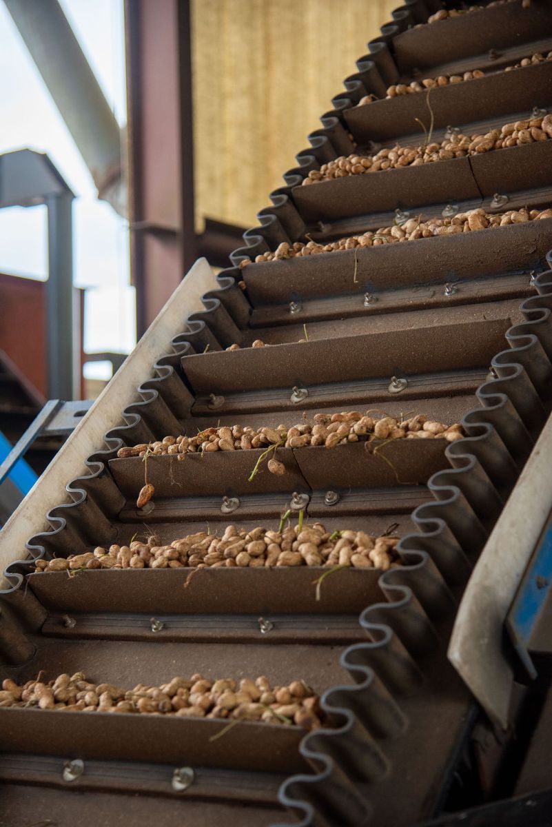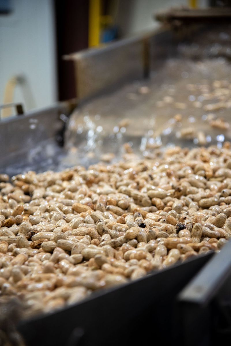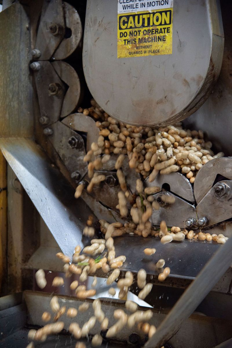 The truck brings the peanuts from the field to their facility where a machine shakes out all the dirt. Then the peanuts are cleaned in a wash line, sanitized, and sent through an optical sorter. “The optical sorter has all these little eyes, and it has a series of air that knocks out the bad peanuts.” They're also brought through a manual line where workers sort them too. The peanuts that don’t make the cut, go back into the soil to help fertilize next year’s crop.