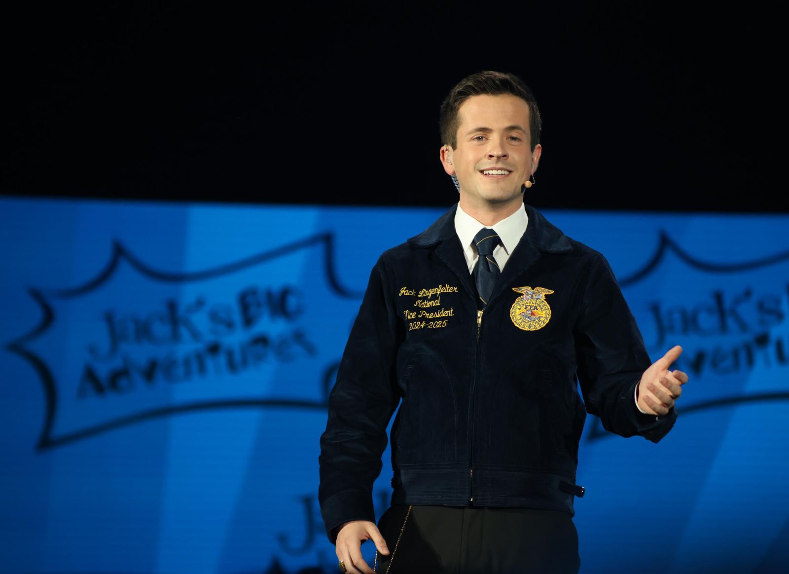 2024-2025 National Southern Region Vice President Jack Lingenfelter (Coffee County) delivers his retiring address at the 98th National FFA Convention. /Photo courtesy of Georgia FFA