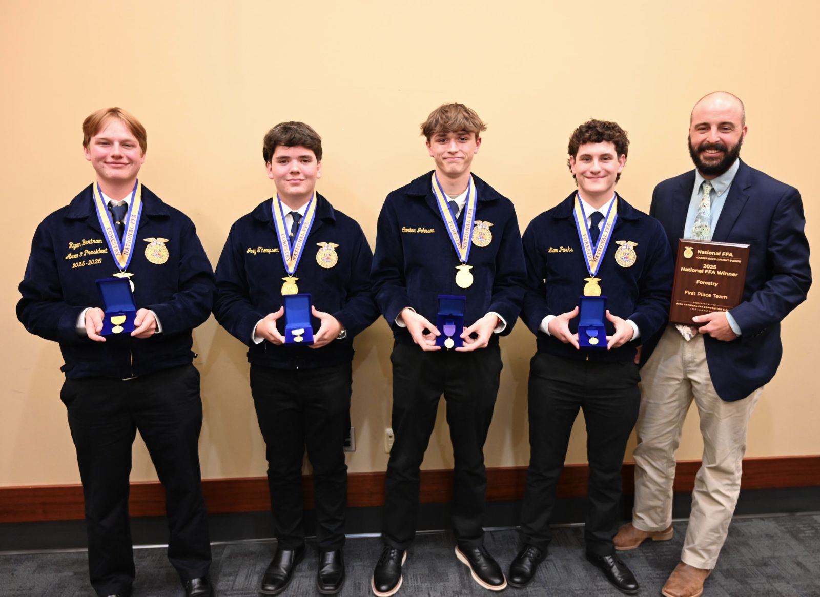 The Mary Persons FFA Chapter, from Monroe County, won first place in the Forestry CDE. Team members included Ryan Bertram, Joseph Thompson, Carter Johnson, Liam Parks and Georgia FFA’s Central Region Forestry teacher Ryan Smith. This is the second consecutive year the chapter has won first place in the national competition. All four members of the team placed in the Top 10 for their individual scores. Parks placed first; Thompson second; Bertram fourth and Johnson seventh.