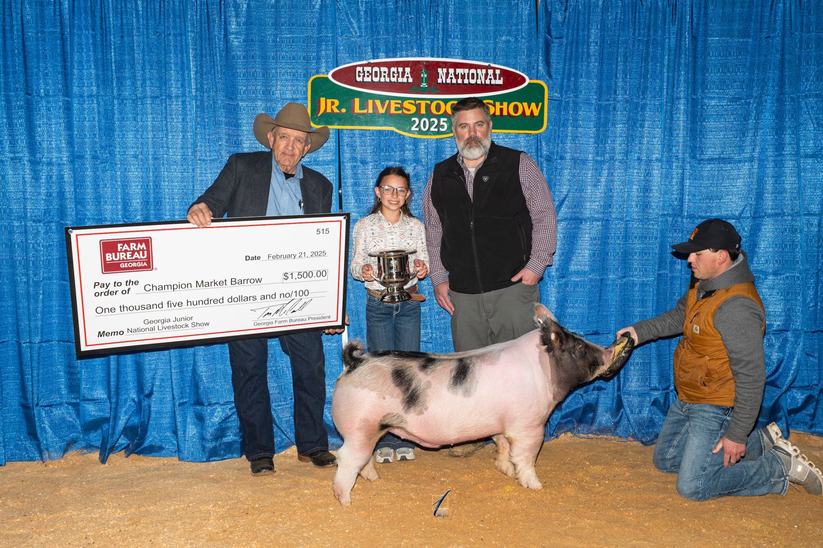 “Tonight is a celebration of grit, heart and the agricultural spirit that drives these remarkable young people. Each of these grand champion exhibitors has spent countless hours feeding, grooming, walking and practicing with their livestock, often long before sunrise or after a full school day. You’ve shown the ability to learn from setbacks, stay committed and work as a team with your animal and your support system,” said GFB President Tom McCall. “Let us also recognize the importance of Georgia FFA and 4-H – two organizations that continue to empower, educate and uplift the next generation of agricultural leaders These programs teach far more than livestock management. They teach public speaking, community service, leadership and lifelong skills that reach far beyond the show barn.”