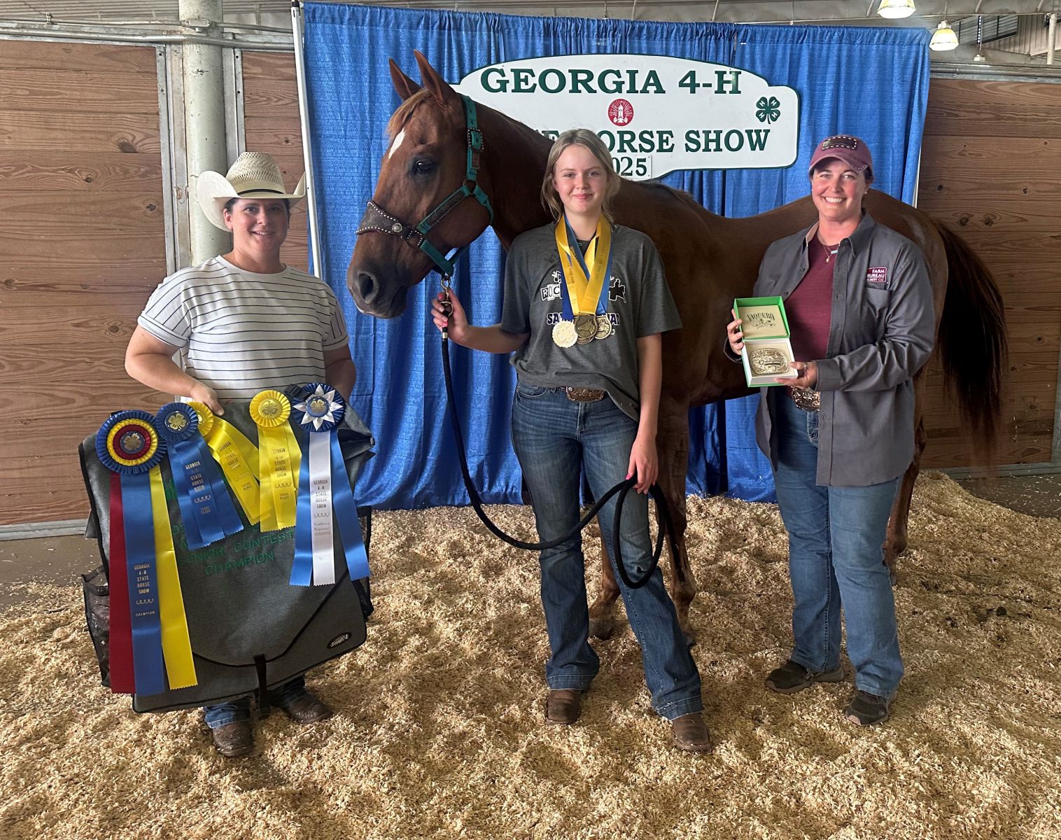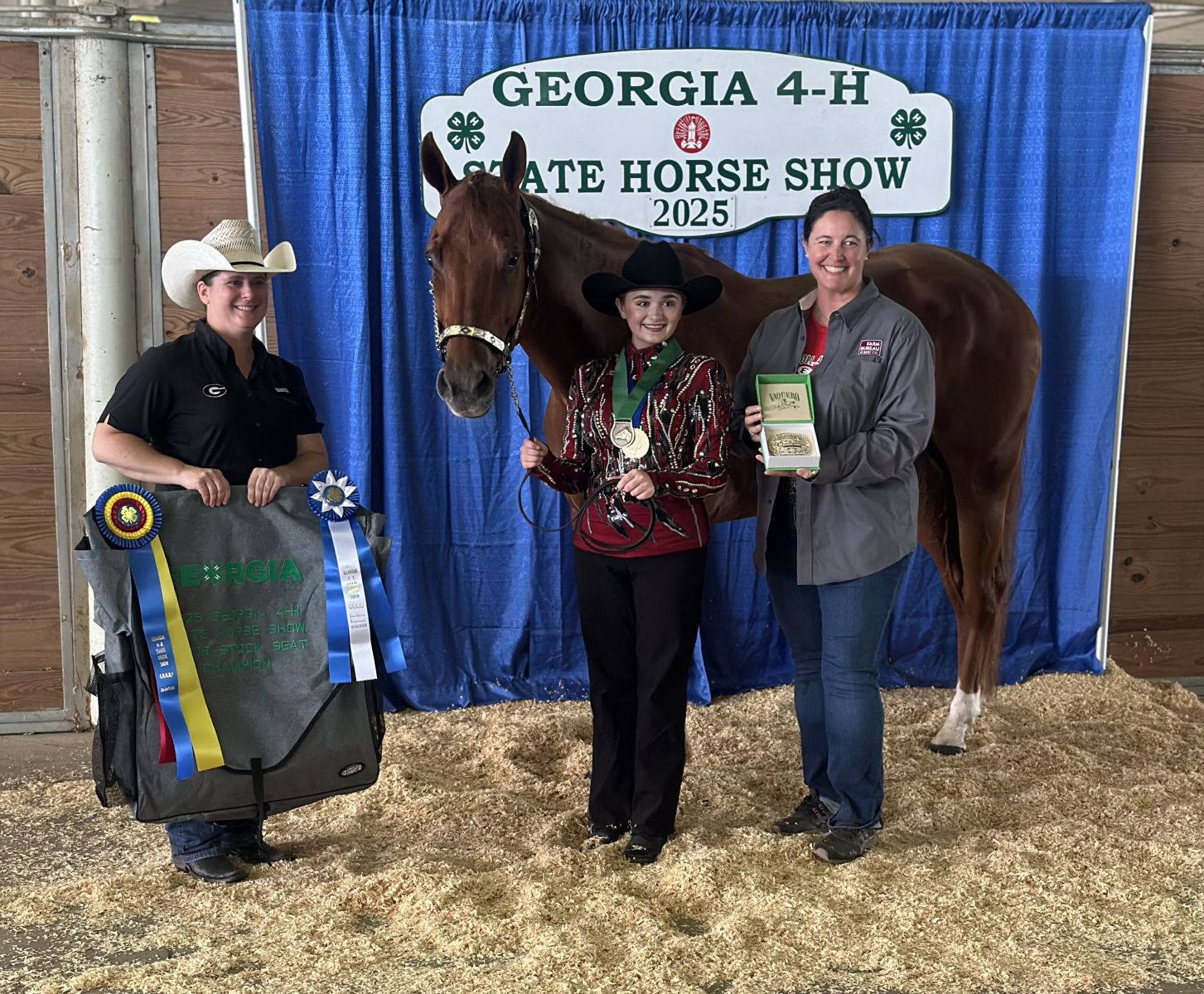 Congratulations to Coffee County 4-H’er Andi Unger, Elbert County 4-H’er Bailee Seymour, and Thomas County 4-H’ers Emily McBrayer and Jenna McBee for being named the champions of the Stock Seat Division (Western), Contest Events Division (racing), Hunt Seat Division (English), and Ranch Horse Division (Western), respectively in the senior 4-H age category (9th-12th grade).