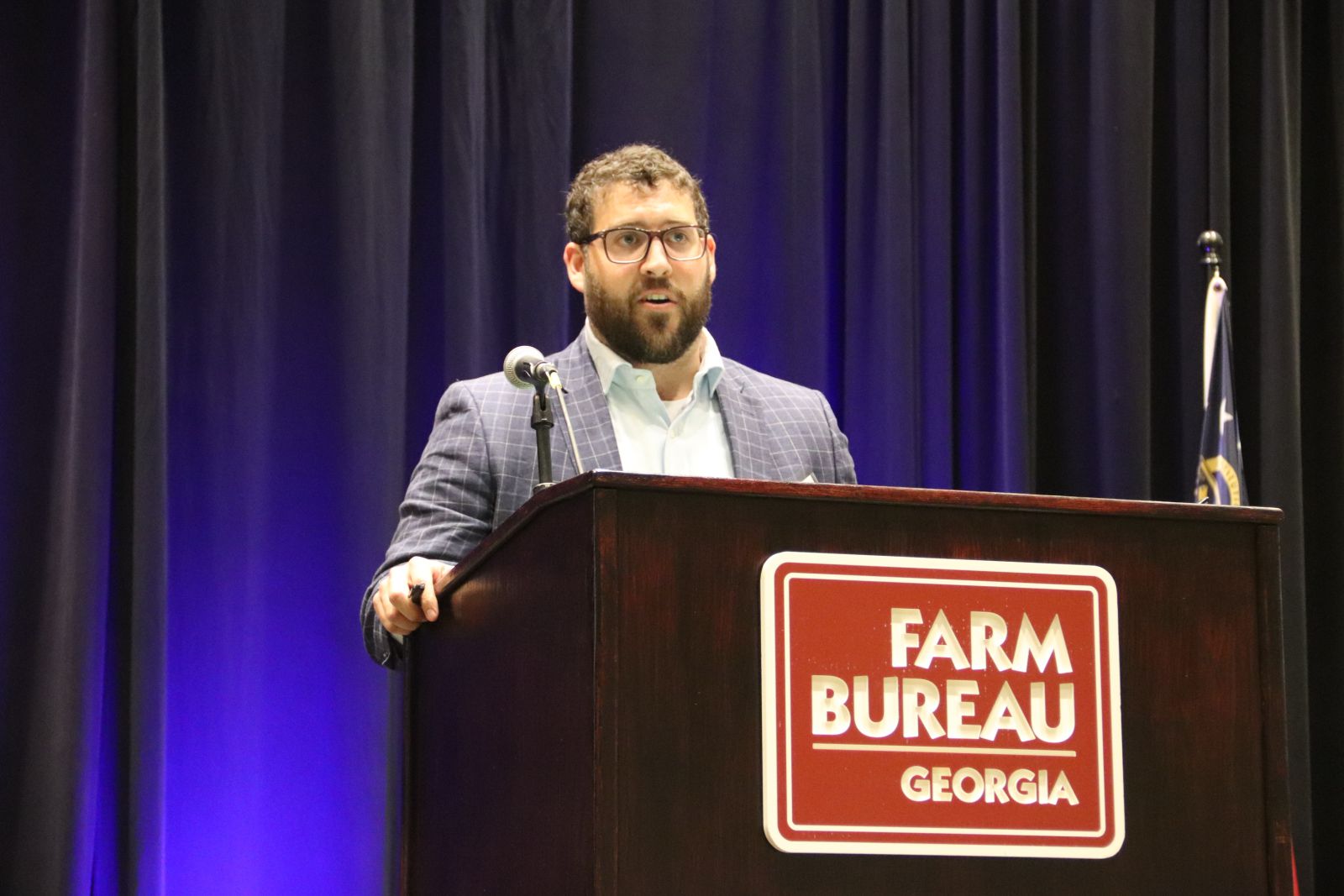 Georgia Agriculture Commissioner Tyler Harper, pictured above, reviewed the Georgia Department of Agriculture’s (GDA) investments in infrastructure and capabilities, with upgrades to the Atlanta Farmer’s Market, the Tifton Seed Lab and emergency response systems. Harper encouraged GFB’s farmer members to engage with policymakers.