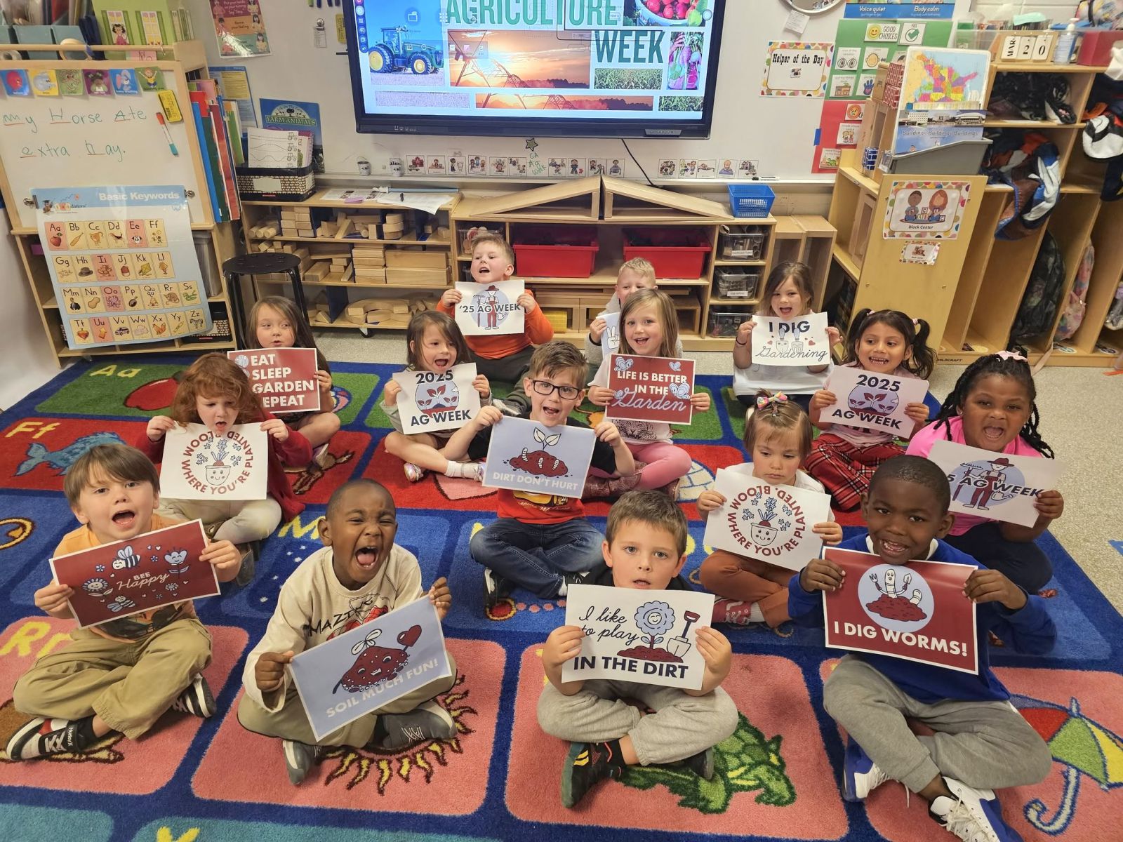Pre-K students in Kristian Jerome’s class celebrated Ag Week by coloring ag picture pages and reviewing the lesson Effingham County Farm Bureau (ECFB) Office Manager Theresa Pevey taught them about soil. /Photo courtesy of ECFB