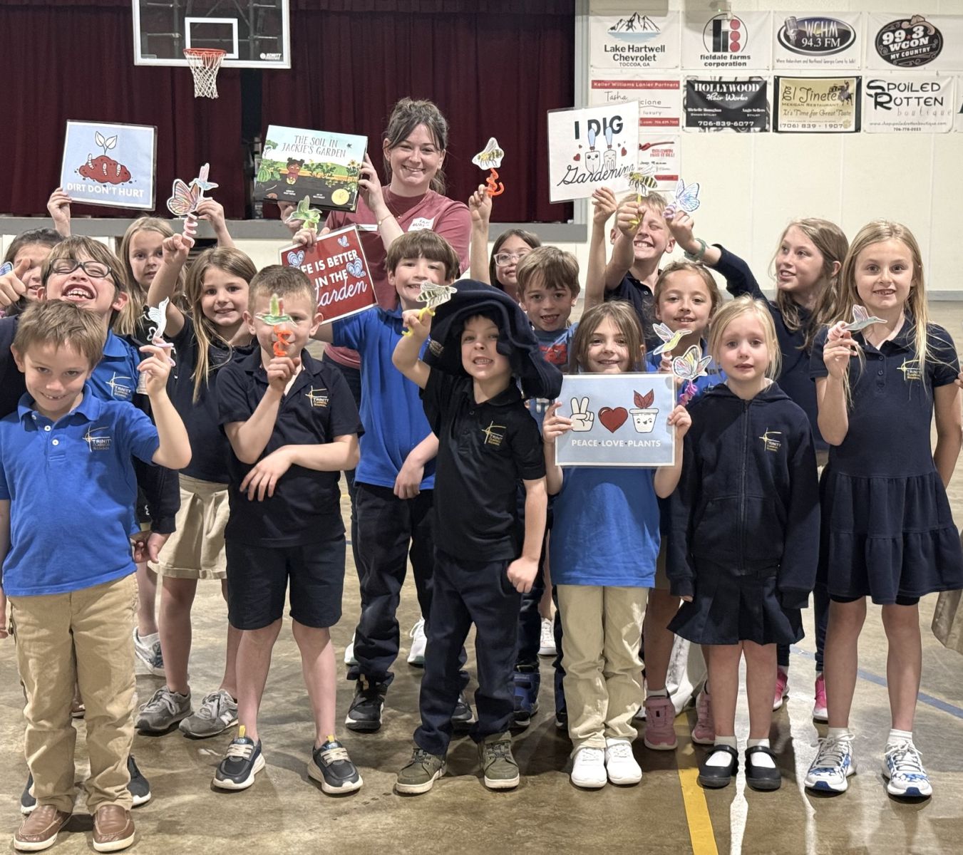Habersham County Farm Bureau Programs Coordinator Madison Bennett read “The Soil in Jackie’s Garden,” to Trinity Classical students and led them in a craft activity that reiterated what they learned about pollinators and gardening. / Photo courtesy of HCFB