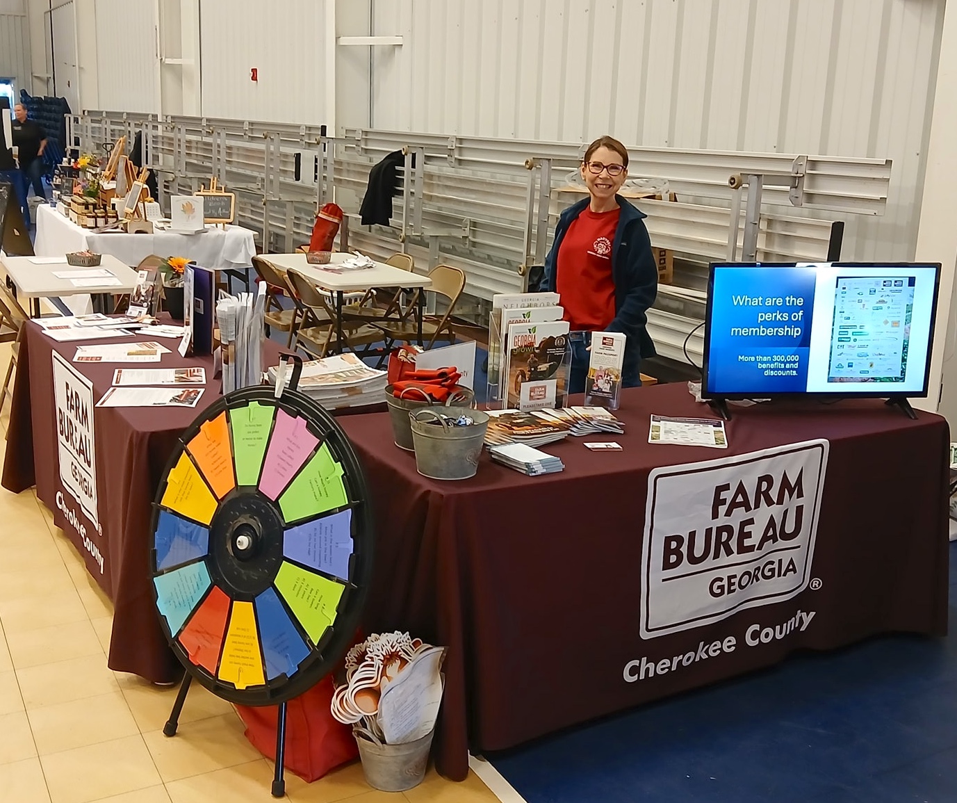 Cherokee County Farm Bureau (CCFB) held an Ag Expo that featured local farmers and artisans selling their products, farm equipment displays, and a horse rescue demo. CCFB Women's Leadership Committee member Candice Luther works the CCFB booth. / Photo courtesy of CCFB