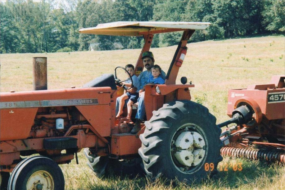 This photo from 2003 shows David Stanford baling wheat straw with sons Thomas and Tyler on the family's Coweta County farm. / Photo courtesy of GDCA