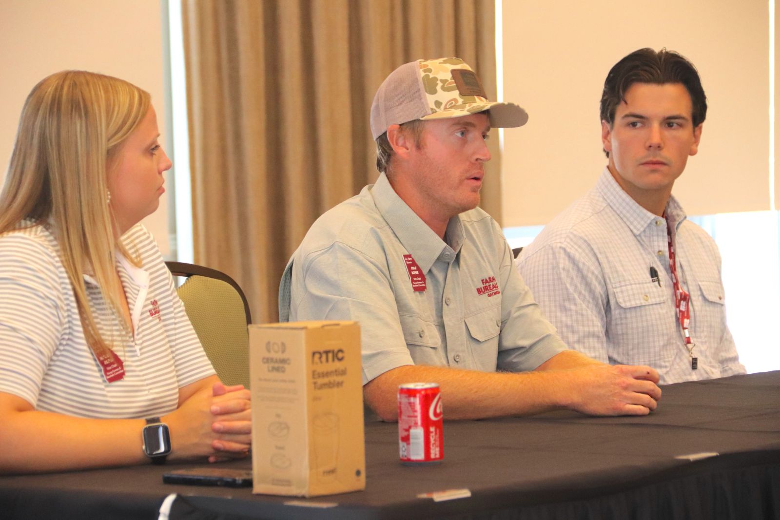 The breakout session “Rooted in Opportunity: A Panel of Young Voices in Ag,” further encouraged conference attendees to become active in Farm Bureau. The panelists included: GFB YF&R Committee members Cole and Nicole Roper; GFB State Affairs Manager Adam Belflower; 2024 Excellence in Agriculture winners Kaitlyn and Kaleb Marchant of Oglethorpe County; and Amelia Jackson, of Floyd County, who served on the 2023/24 GFB YF&R Committees with her husband, Cleve.