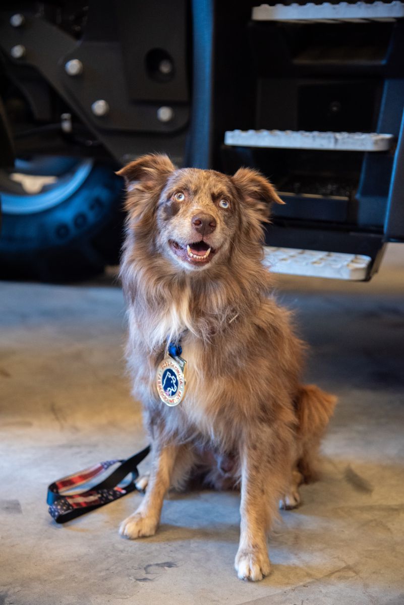 ROOSTER WITH MEDAL: Rooster, a red merle Australian Shepherd who lives in Putnam County with his owner, Shawn Raff, was named the 2025 Georgia Farm Bureau Farm Dog of the Year at the Sunbelt Ag Expo on Oct. 14. /Photo courtesy of Georgia Farm Bureau