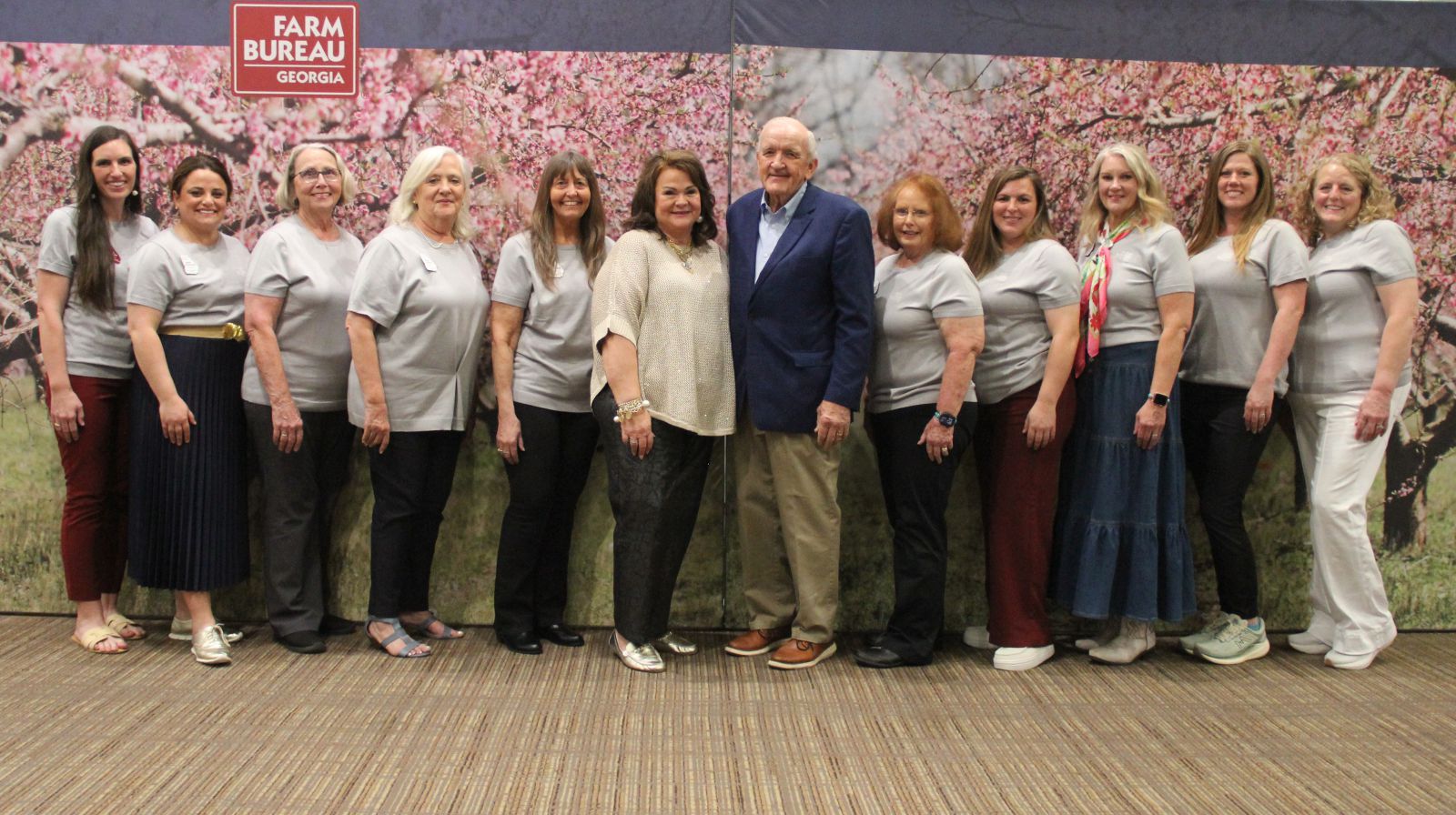 Members of the 2026 GFB Women’s Leadership Committee visit with GFB President Tom McCall & his wife, Jane, during the first day of the GFB Women in Ag Summit being held in Savannah March 19 & 20. Pictured from left are: Emilia Jackson, Floyd Co., GFB Dist.1; Vice Chairwoman Anna Strickland, Madison Co., GFB Dist. 2; Carol McQueen, Henry Co., GFB Dist. 3; Della Fowler, Greene Co., GFB Dist. 4; Chairwoman Romy Strickland, Spalding Co., GFB Dist. 5; Jane McCall, GFB President Tom McCall, Jane Wooten, Jeff Davis Co., GFB Dist. 6; Whitney Sheppard, Screven Co., GFB Dist. 7; Alicia Berry, Sumter Co., GFB Dist. 8; Michaela White, Thomas Co., GFB Dist. 9; & Melissa Williams, Berrien Co., GFB Dist. 10.