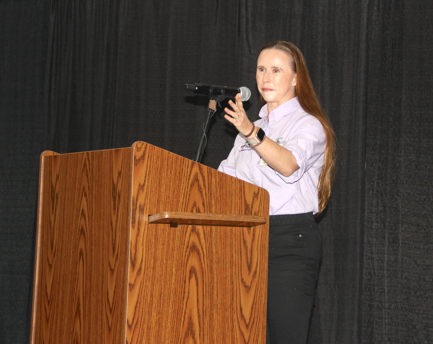 UGA College of Agricultural & Environmental Sciences economist Amanda Smith discusses peanut program provisions during the Georgia Peanut Tour on Sept. 16. / Photo by Jennifer Whittaker