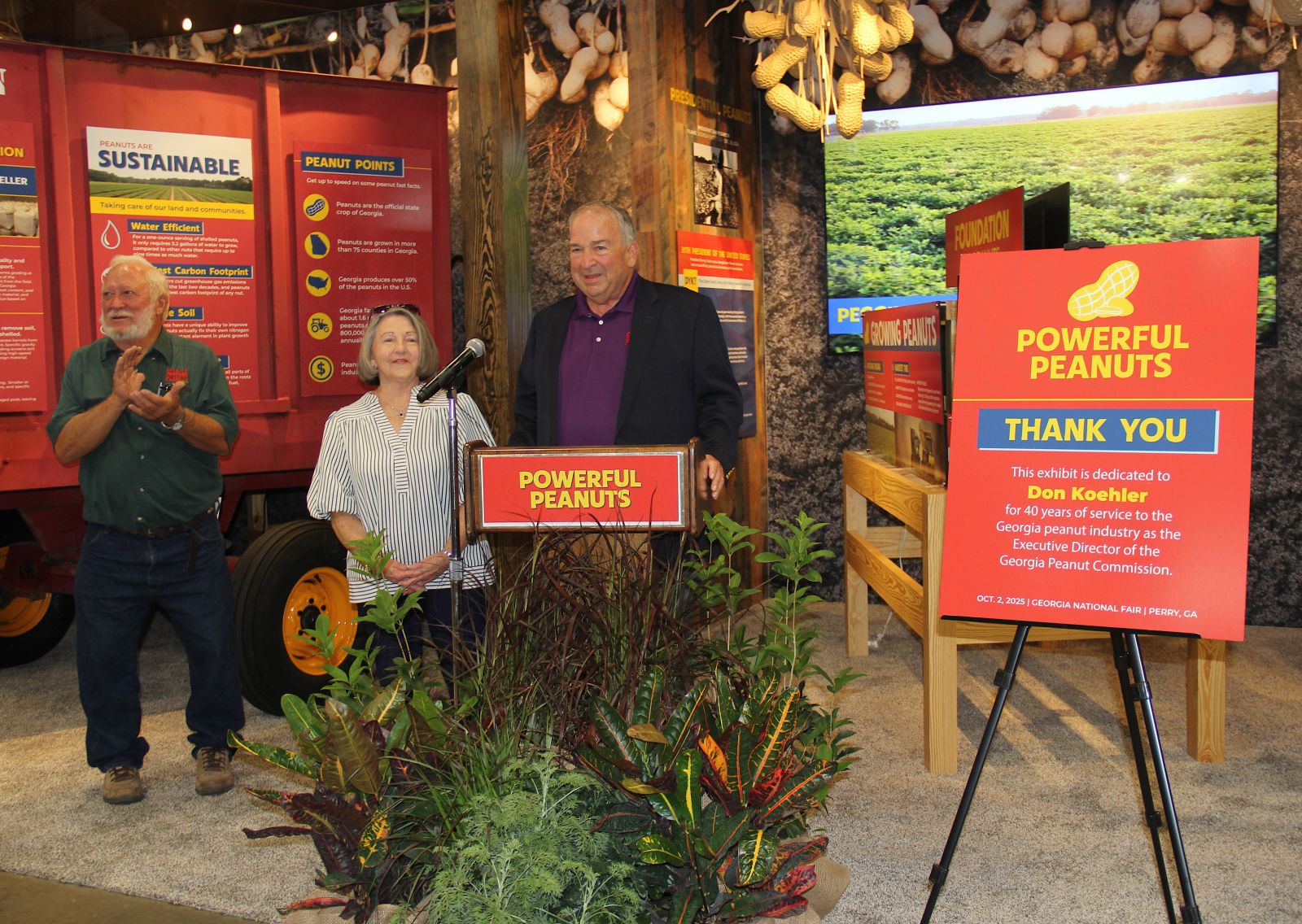 Longtime GPC Executive Director Don Koehler was surprised during the exhibit ribbon cutting ceremony to learn the exhibit is dedicated to him for his many years of service to the peanut commission. Koehler announced in January that he will retire Aug. 1, 2026, at which time he will have served 40 years in his position.
