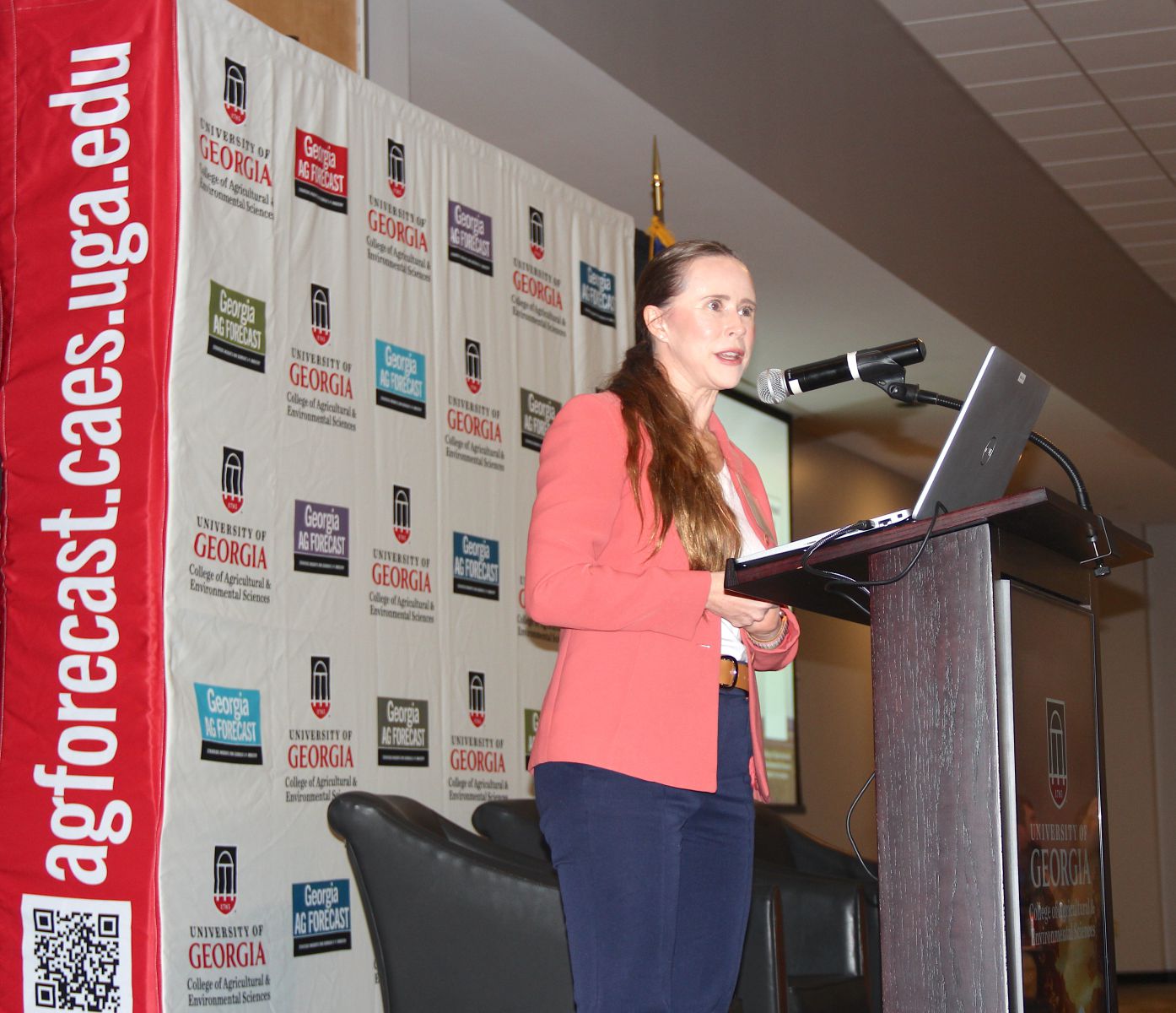 Amanda Smith, above, a senior public service associate with the UGA CAES, provided analysis of the 2025 crop year for the U.S. and Georgia and shared insights about the coming year. / Photo by Jennifer Whittaker