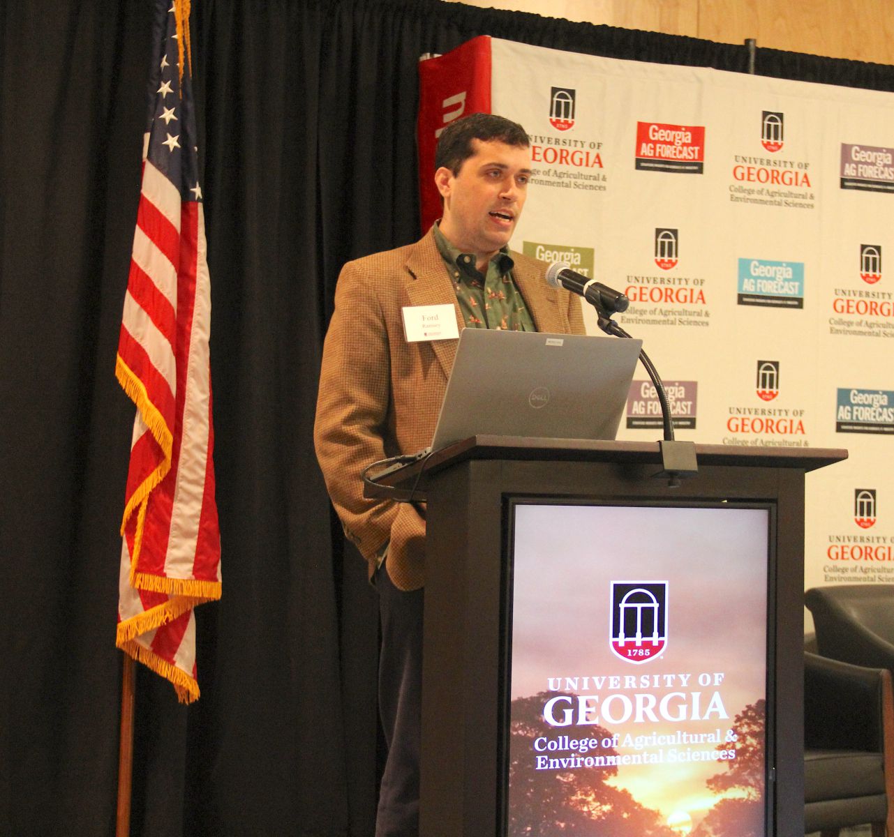 Dr. Ford Ramsey, above, UGA CAES associate professor, said the overall 2026 U.S. economic forecast calls for the second consecutive year of slow economic growth as trade wars and restrictive immigration policies impact the economy. / Photo by Jennifer Whittaker