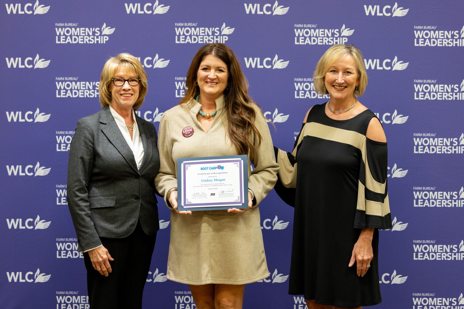 Congratulations to Georgia Farm Bureau Women’s Leadership Committee member Lindsey Morgan, center, for graduating from the American Farm Bureau Federation (AFBF) Women’s Communications Fall Boot Camp on Oct. 30! AFBF Women’s Leadership Chairman Isabella Chism, left, & AFBF Vice President of Communications Terri Moore offer congratulations. /Photo courtesy of AFBF