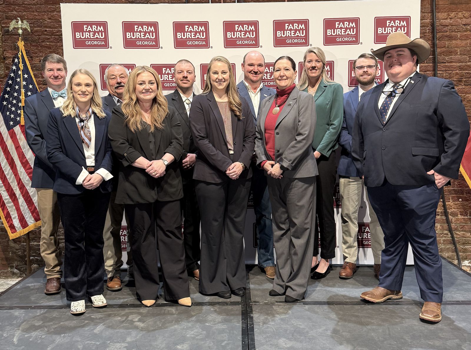 Congratulations to the inaugural Leadership GFB class! Front row, from left are: Liz Danforth, Lowndes County; Mattie Boyles, Thomas County; Sara Beth Studstill, Wilcox County; Angie Roberts, McDuffie County; and Garrett Hart, Hart County. Back row, from left are: Colt Calhoun, Miller County; Gregg Hendrix, Evans County; Luke Andrews, Lamar County; David Morgan, Pierce County; Toni Gaines, Bartow County; & Owen Paulk, Irwin County. Not pictured is Stephanie Branch, Rabun County. / Photo by Heather King